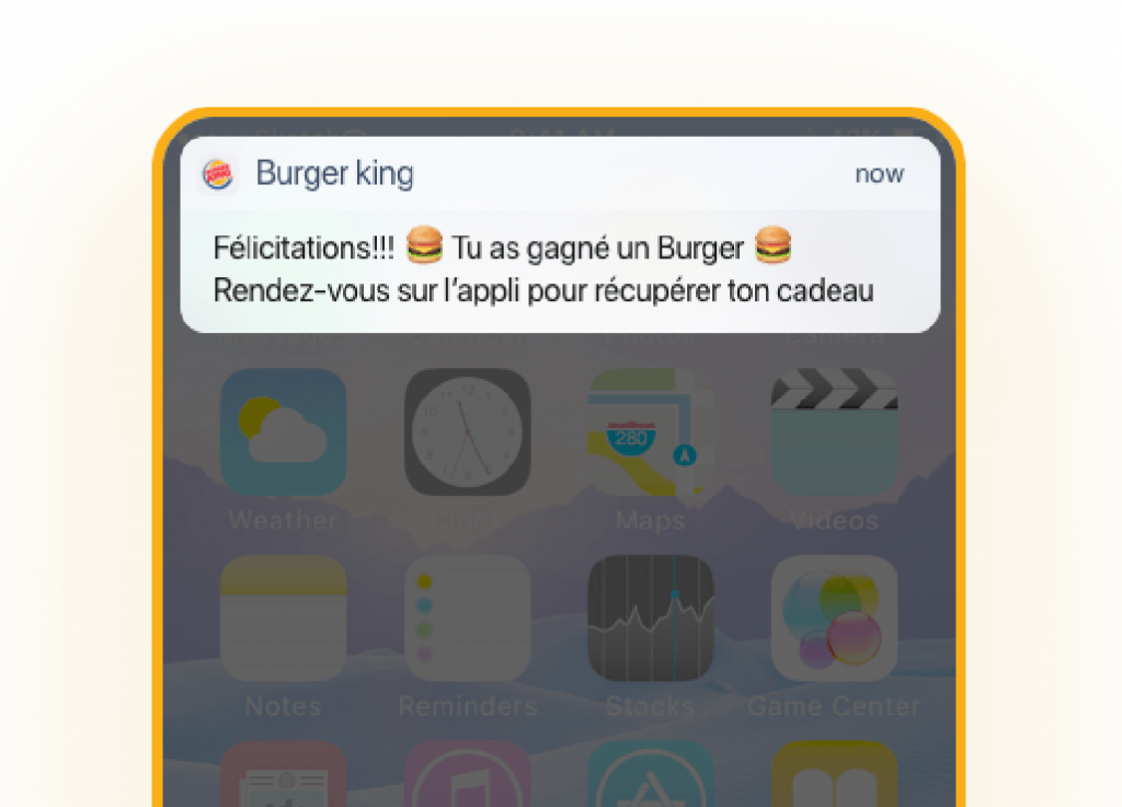 « Félicitations !!!! Vous avez gagné un burger ! Rendez-vous dans l’application pour récupérer votre cadeau.